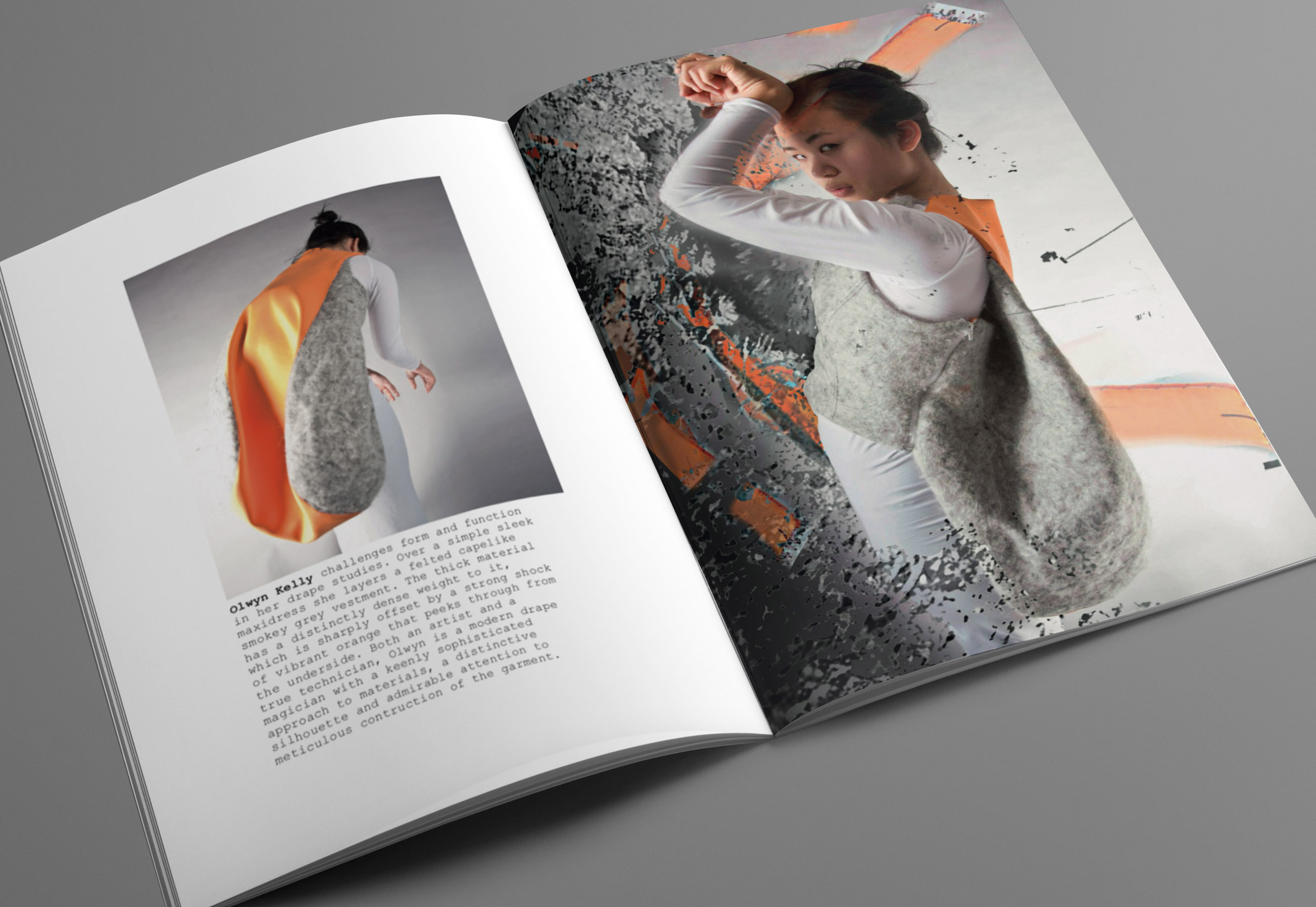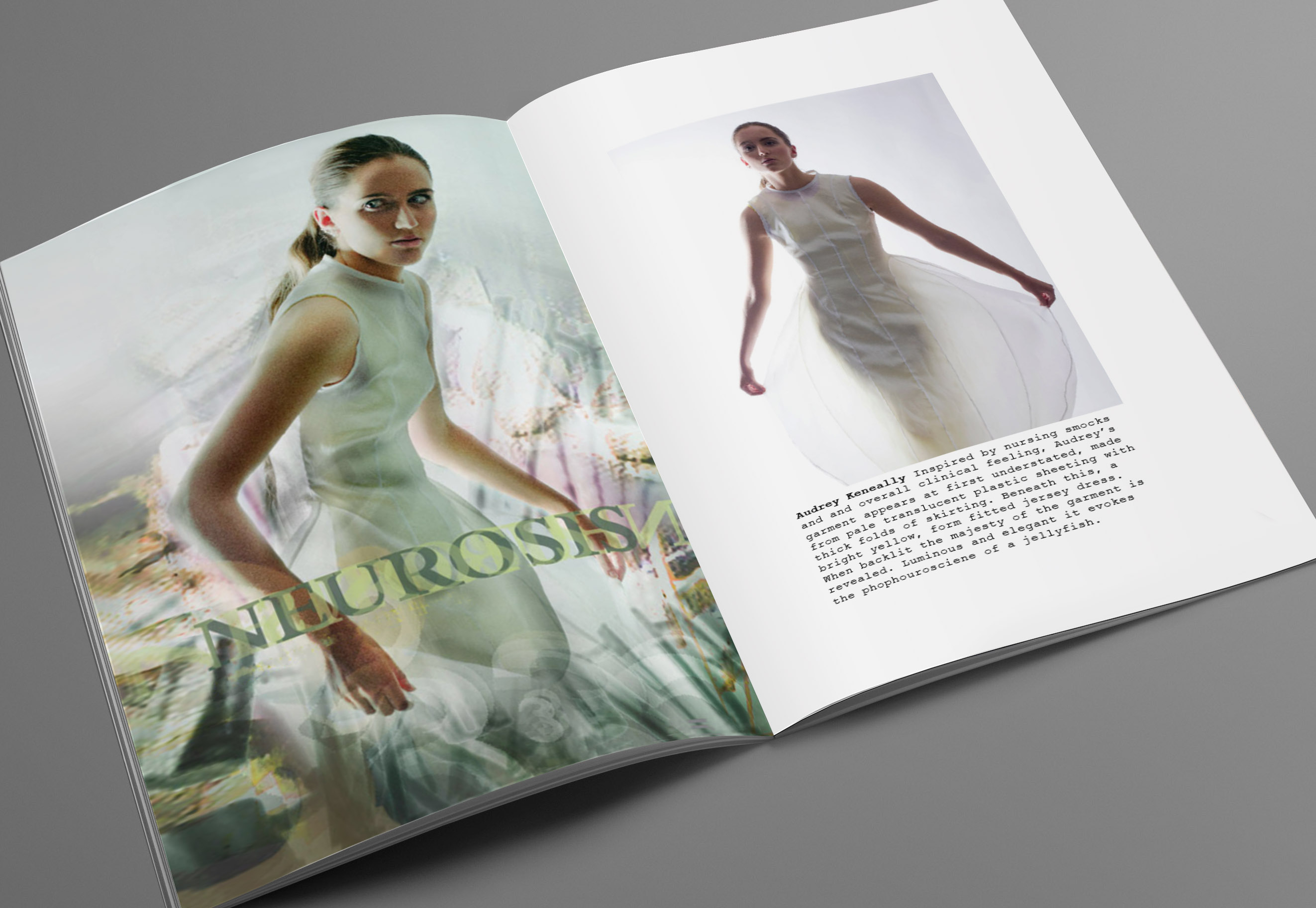 Alongside the photography, I designed the publication itself. Bold, complementary graphics and short written blurbs introduced each designer, adding context and personality to their work. Printed in A5 and staple-bound, the zine balanced accessibility with polish — a tangible, shareable piece that elevated the students’ collections while carrying the energy of an independent fashion publication.