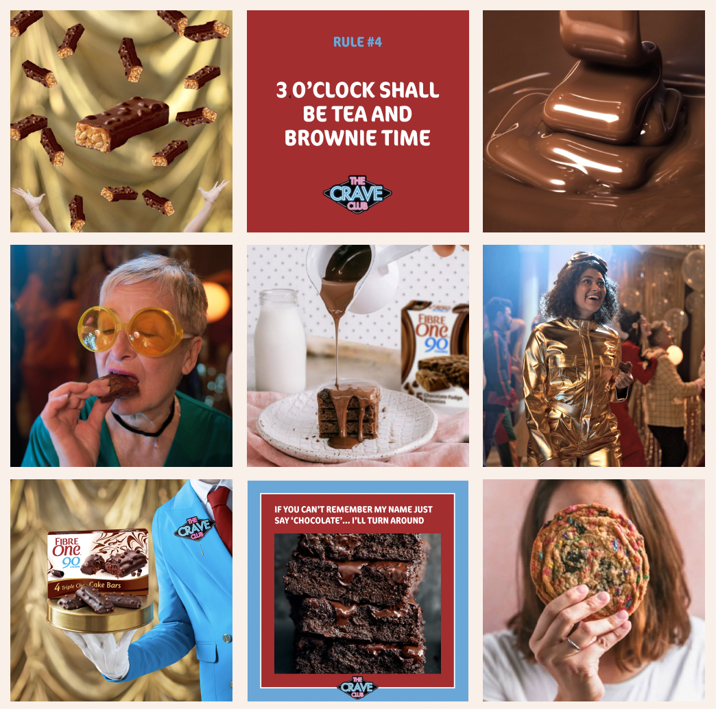 Always-On Social Content: To extend the campaign beyond the TVC and retail, we transformed Fibre One’s social channels into The Crave Club. The feeds became a playful, indulgent space filled with relatable content and crave-worthy food imagery, all designed to reinforce the idea of “permissible indulgence.”